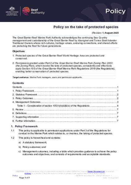 Policy on the Take of Protected Species.pdf | 233.11 kB | Adobe PDF | ![]() View/Open |