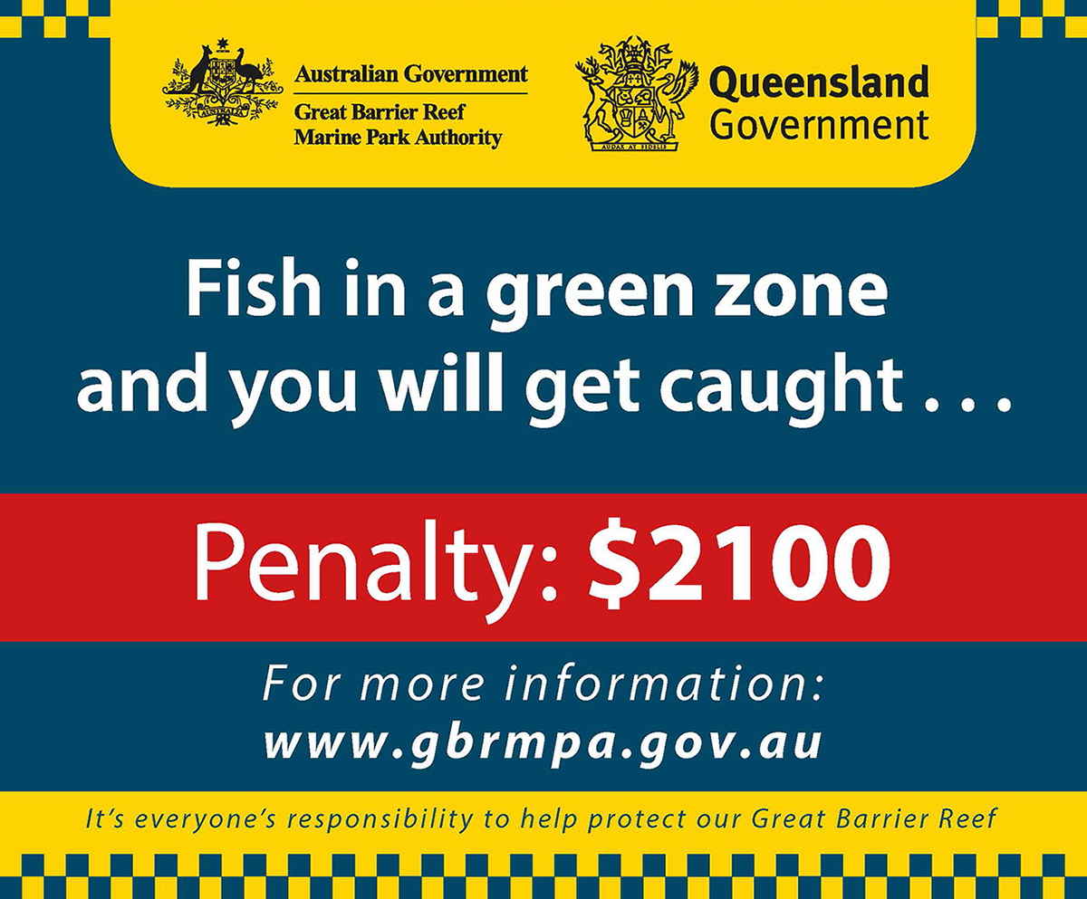 Graphic reminding marine park users that fishing in a green zone can incur a costly fine.